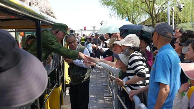 张志民接到工作人员汇报后得知,这批来访的老兵最年轻的92岁,最年长的98岁,多人行动不便,有的还坐着轮椅。出于对文物的保护,景区内道路较窄且地面为石头铺设,不适合轮椅通行。因此,龙门石窟景区临时决定允许车辆驶入,以方便老兵参观。
