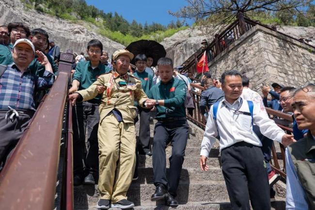 4月10日上午8点半,这些老兵进入景区,直到11点40分左右离开。期间他们受到众多游客的夹道欢迎,大家纷纷向老兵致敬。龙门石窟研究院副院长张志民表示,游客们像主人一样欢迎老英雄们来做客。